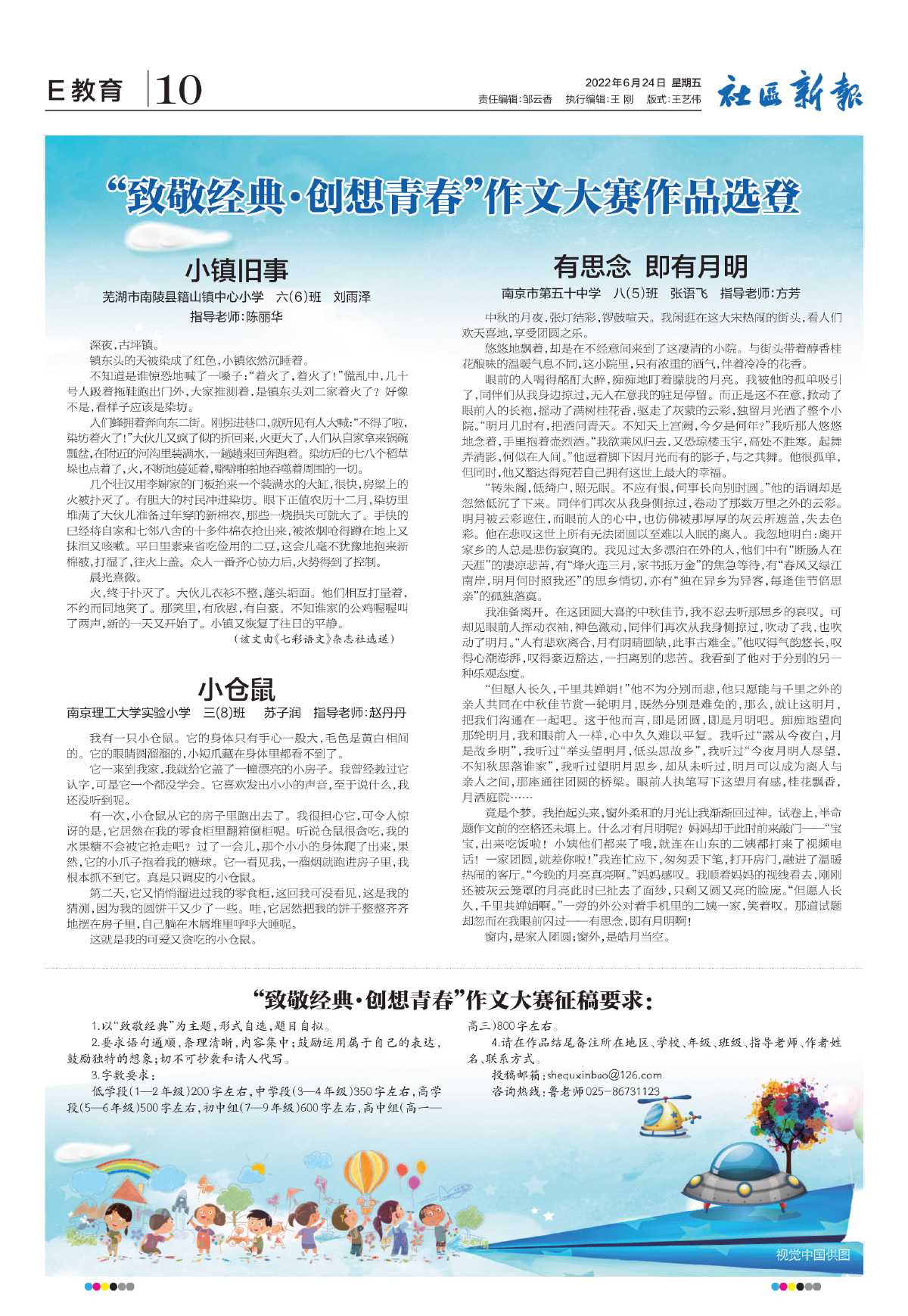 “致敬经典·创想青春”作文大赛征稿要求: