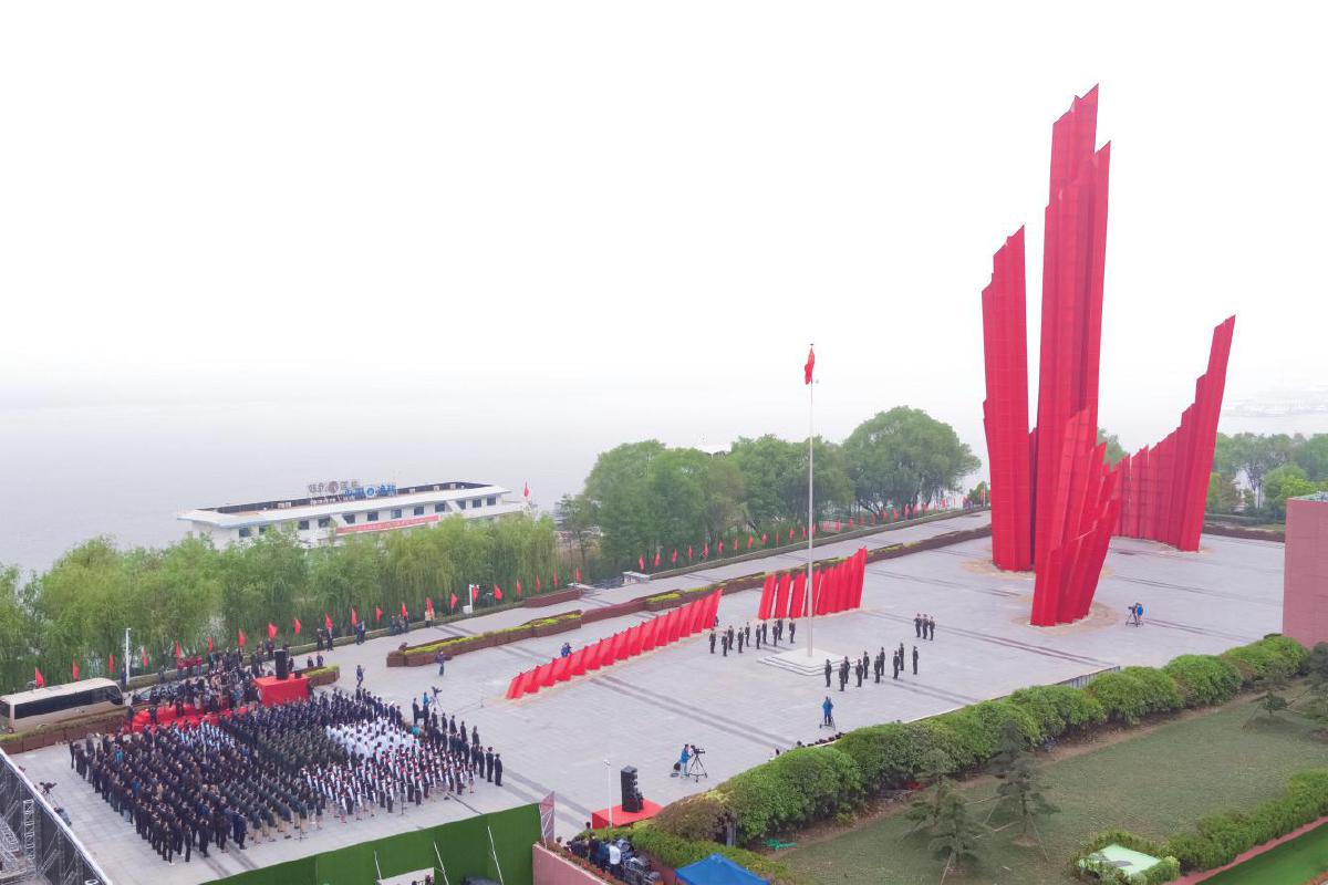 图为庆祝渡江战役胜利暨南京解放73周年升国旗仪式 渡江胜利纪念馆供图