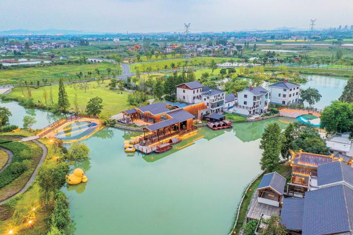 江宁区湖熟街道金陵水乡·钱家渡村,处于平原圩区,河网纵横、田地相间,是典型的江南水乡。走进村庄,满眼都是怡人景色,古朴的民居参差错落,别致有趣的小桥尽显江南水乡的曼妙姿色。这里的高效水产养殖、蔬菜稻米种植,俨然一座现代的世外桃源。