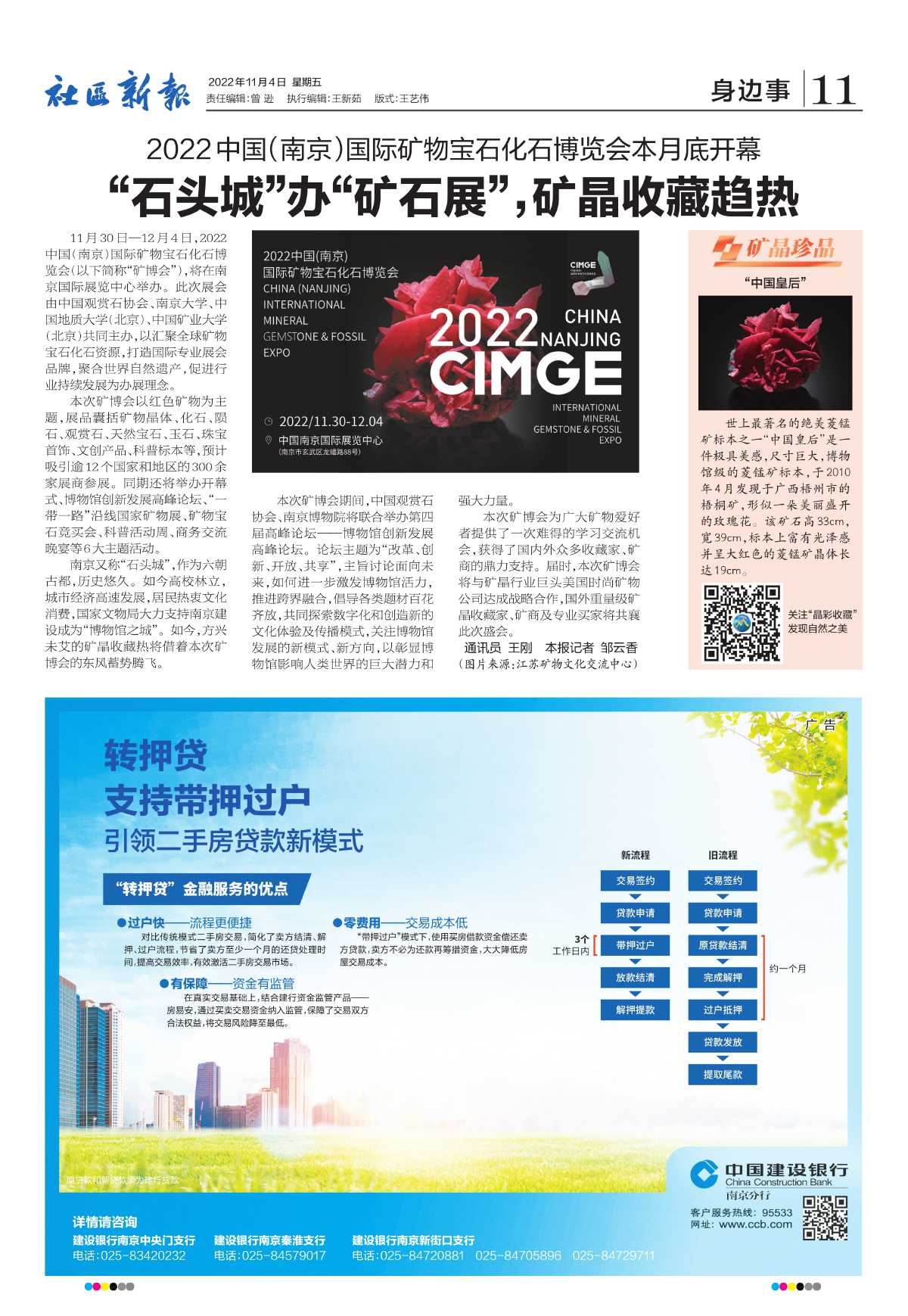 11月30日—12月4日,2022中国(南京)国际矿物宝石化石博览会(以下简称“矿博会”),将在南京国际展览中心举办。此次展会由中国观赏石协会、南京大学、中国地质大学(北京)、中国矿业大学(北京)共同主办,以汇聚全球矿物宝石化石资源,打造国际专业展会品牌,聚合世界自然遗产,促进行业持续发展为办展理念。