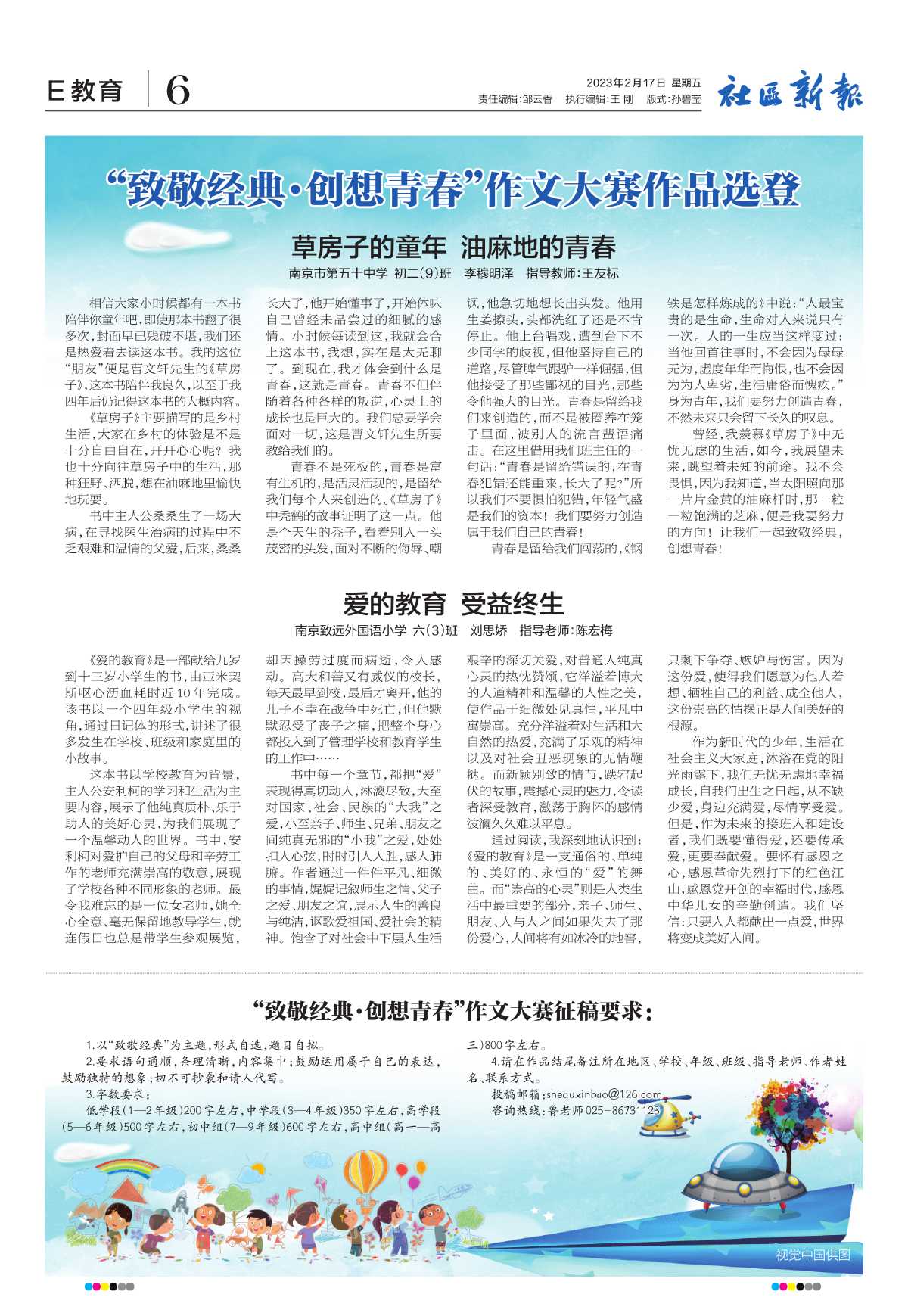 曾经,我羡慕《草房子》中无忧无虑的生活,如今,我展望未来,眺望着未知的前途。我不会畏惧,因为我知道,当太阳照向那一片片金黄的油麻杆时,那一粒一粒饱满的芝麻,便是我要努力的方向!让我们一起致敬经典,创想青春!
