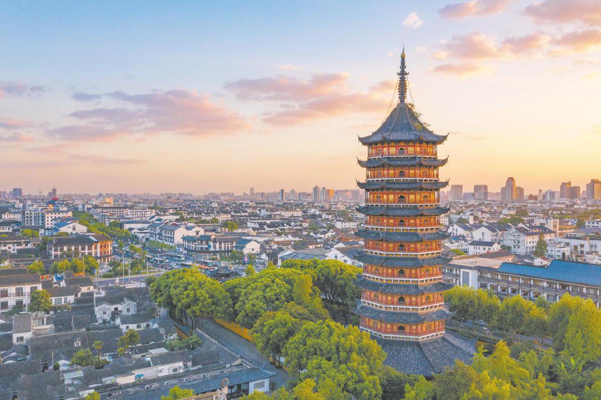 古朴的北寺塔和现代的苏州中心同框而现,姑苏风景尽收眼底。