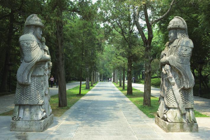 朱元璋没有兴师动众地“夷平”梅花山,而是选择将墓道向西“拐了个弯”,既有客观因素又有个人原因。从横笛牛背的牧童、小行僧到明朝的开国皇帝,朱元璋的行事作风不拘于旧制,这从其陵墓的建造上便可窥见一二。为了达到人工建造与自然形势的完美结合,陵墓神道依照山势采用回转曲折的布法,于实际建造中追求效果最优化,这可不就是尊重客观的“务实”表现吗?