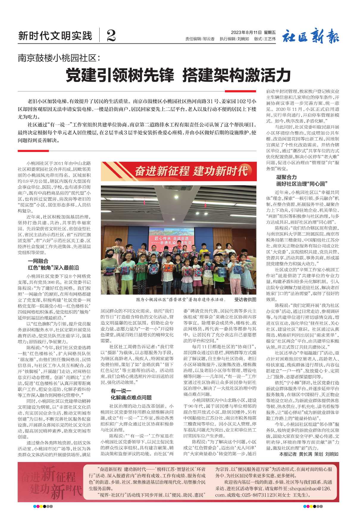 陈程说:“我们结合辖区现有资源,与南京医科大学第二附属医院、南京市税务局第三稽查局、中国船级社江苏分社、南京天正物业服务有限公司成立社区‘大党委’,实现组织共建、党员共管、资源共享、活动共联、事务共商,形成基层党建整合力和强大动力。”