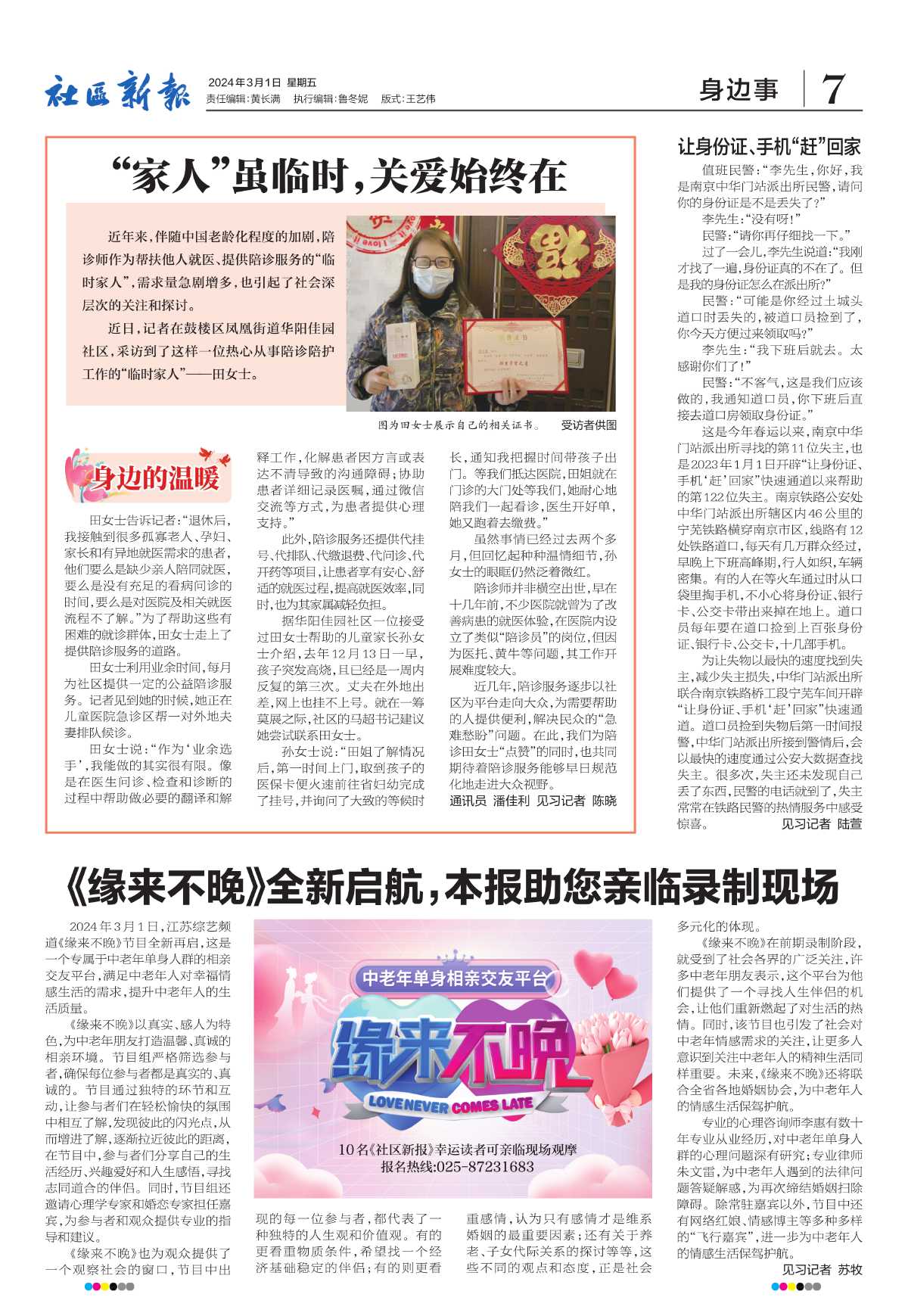 2024年3月1日,江苏综艺频道《缘来不晚》节目全新再启,这是一个专属于中老年单身人群的相亲交友平台,满足中老年人对幸福情感生活的需求,提升中老年人的生活质量。