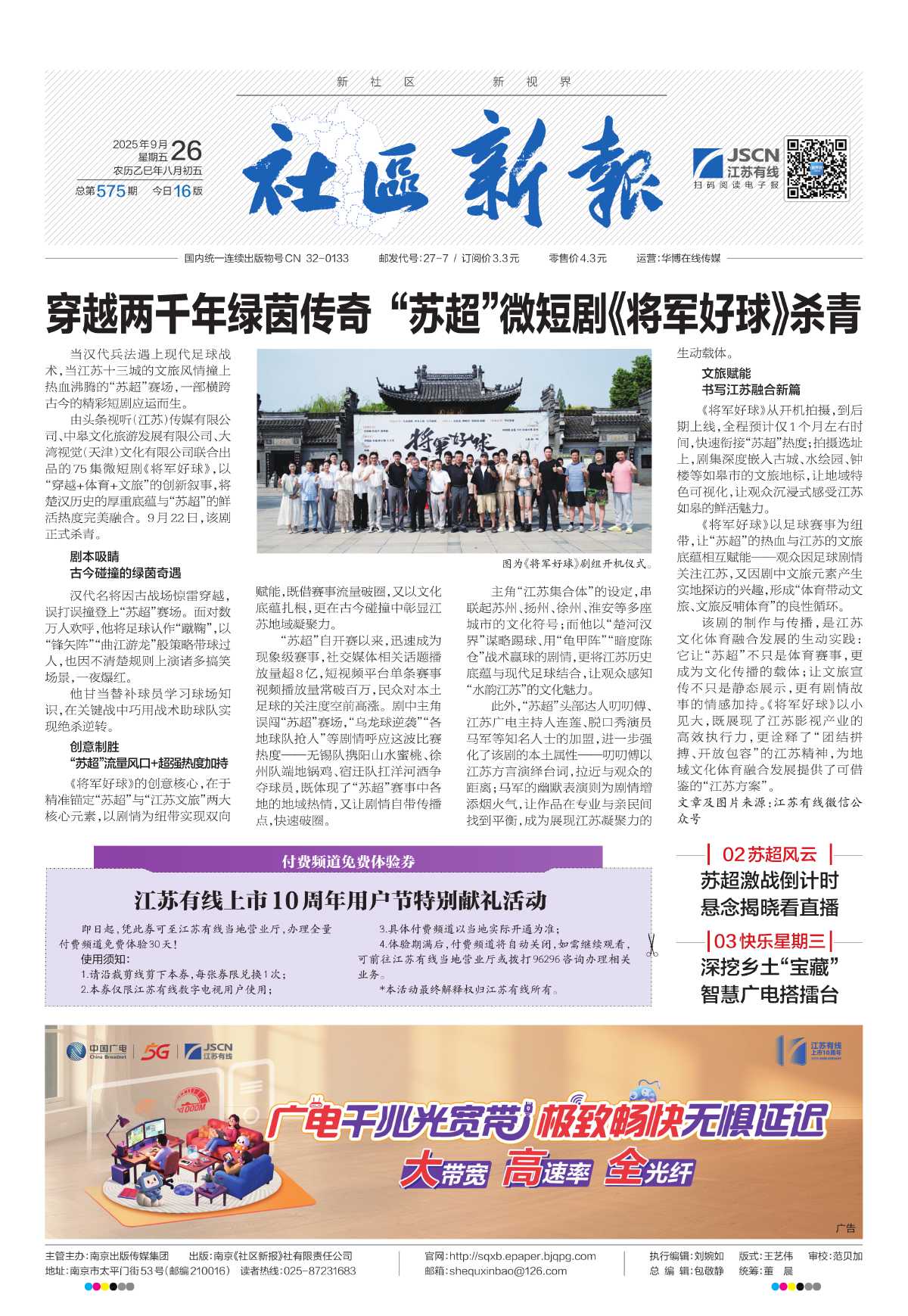 穿越两千年绿茵传奇 “苏超”微短剧《将军好球》杀青