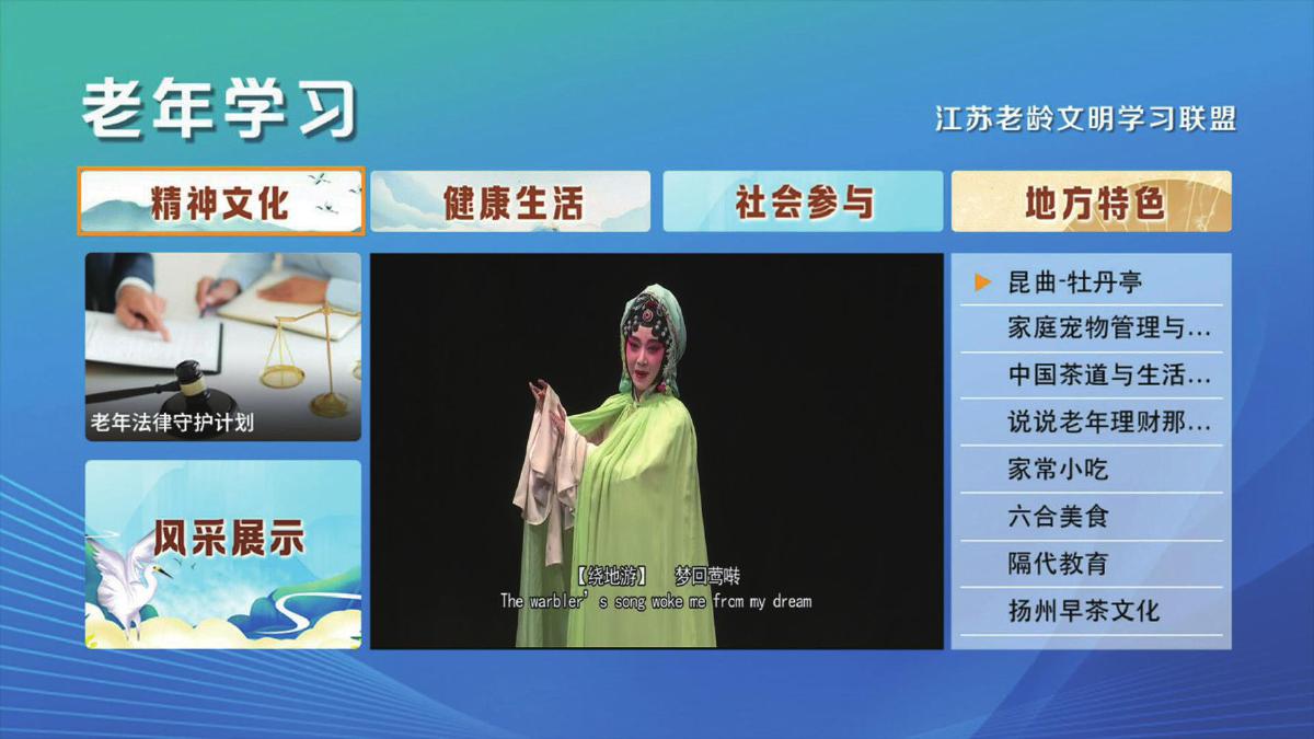 观看路径 有线电视机顶盒—广电独家—老年学习—健康生活—运动养生
