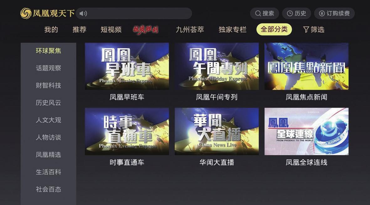 有线电视机顶盒—看电视—我的应用—凤凰观天下
