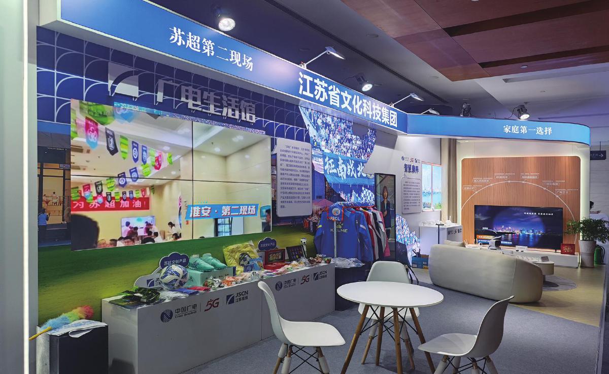 “苏超第二现场”展区则将户外观赛场景“搬”进展厅,现场人头攒动,气氛热烈。今年6月,集团率先推出电视大屏“苏超”专区,凭借“直播+回看+周边”的一站式服务,深度触达2400万用户。同时,联动500多块户外大屏、落地2000余场主题活动,实现全媒体传播触达2.3亿人次的亮眼实绩,不仅有效助力“苏超”IP破圈传播,更深度诠释了将体育热点转化为创新消费场景、激发城市活力的生动实践。现场还设置了数字人互动讲解,结合AI制作的创意短视频及文创产品展示,生动再现了“苏超”赛事期间的文化热度与消费活力。