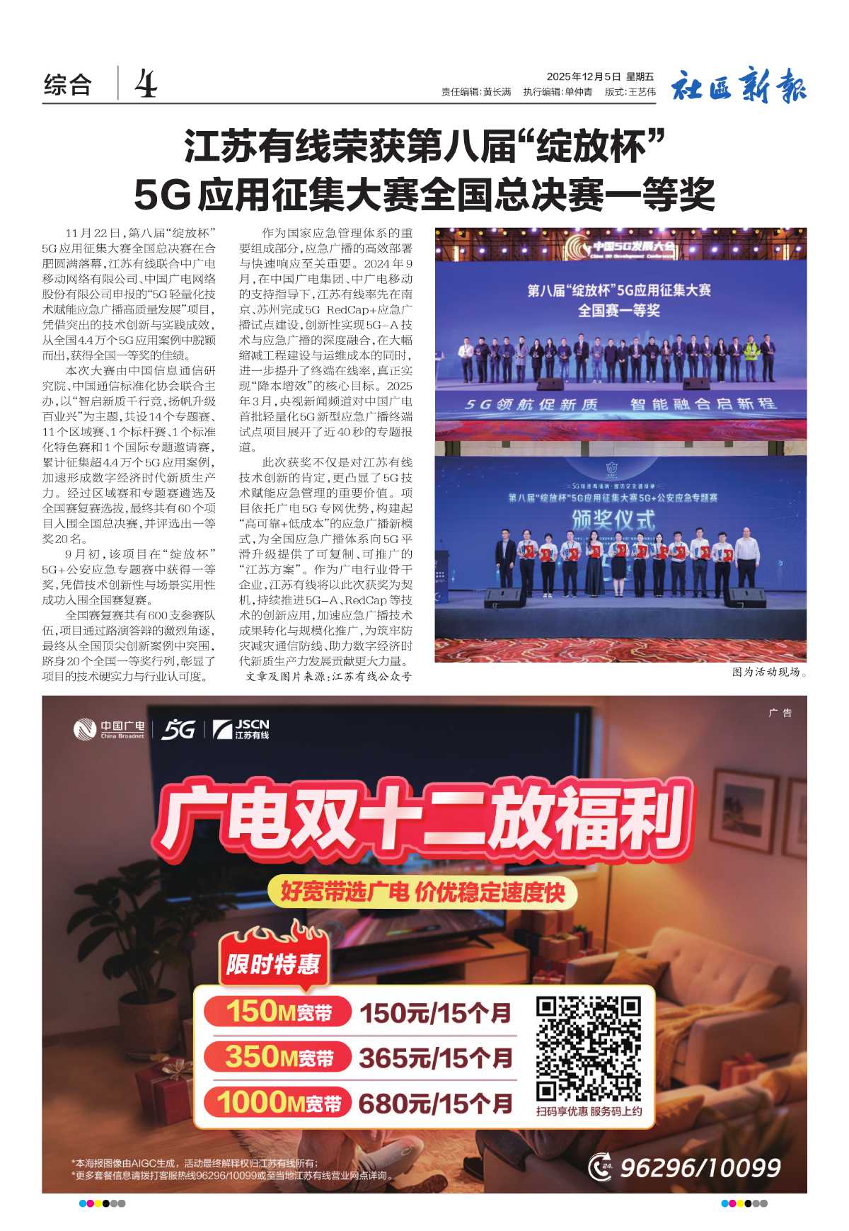 江苏有线荣获第八届“绽放杯”5G应用征集大赛全国总决赛一等奖