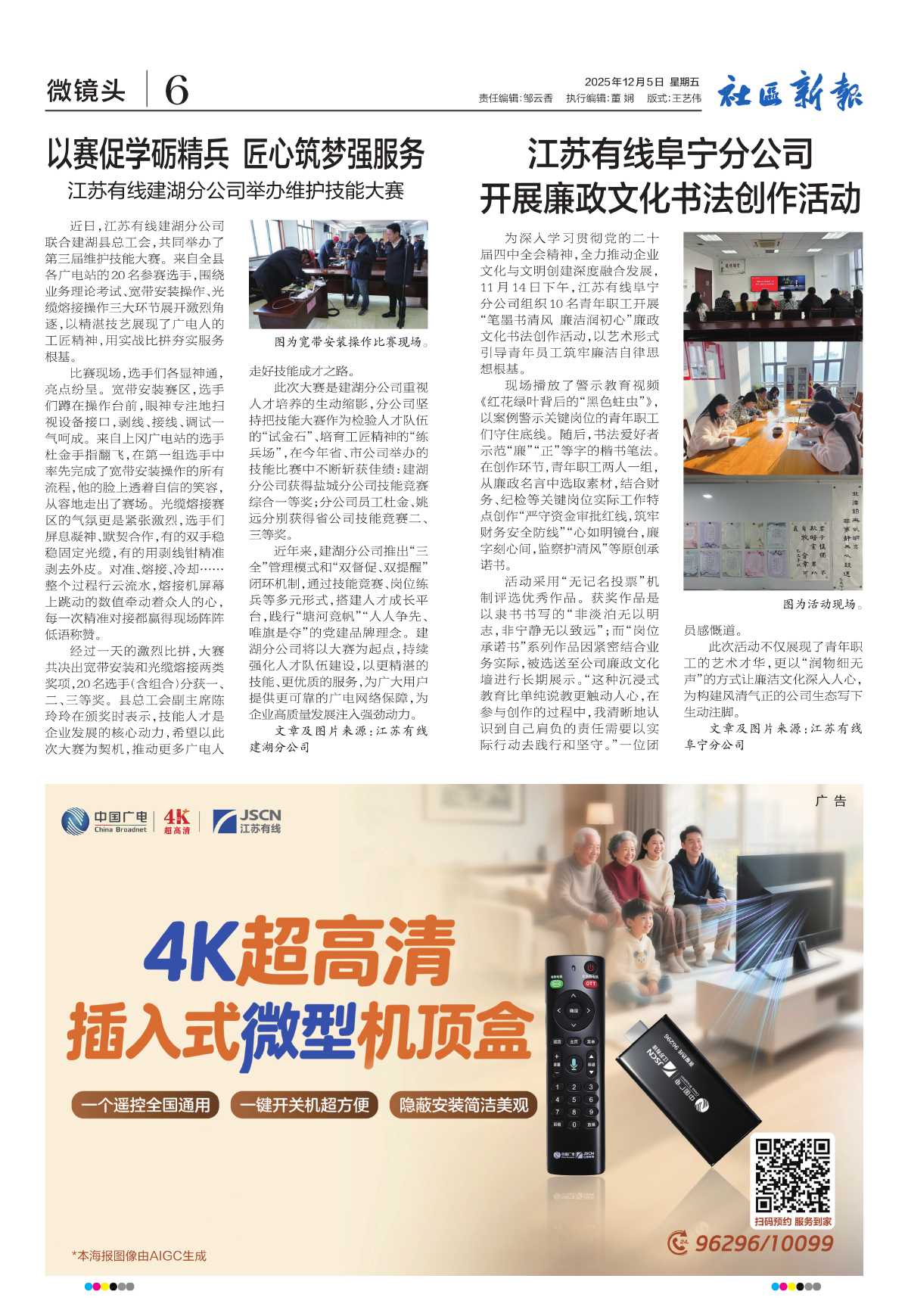 江苏有线阜宁分公司开展廉政文化书法创作活动