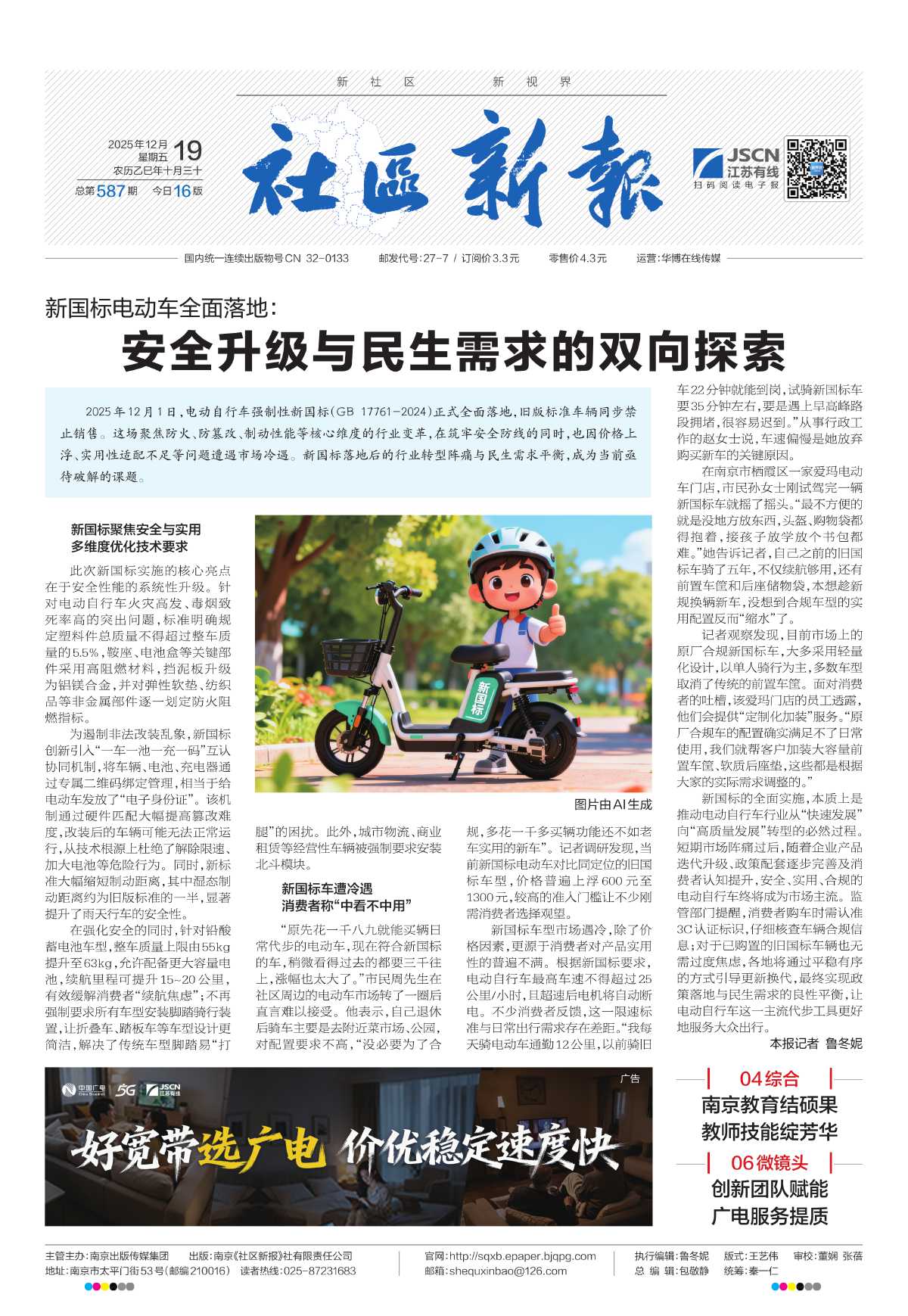 在南京市栖霞区一家爱玛电动车门店,市民孙女士刚试驾完一辆新国标车就摇了摇头。“最不方便的就是没地方放东西,头盔、购物袋都得抱着,接孩子放学放个书包都难。”她告诉记者,自己之前的旧国标车骑了五年,不仅续航够用,还有前置车筐和后座储物袋,本想趁新规换辆新车,没想到合规车型的实用配置反而“缩水”了。