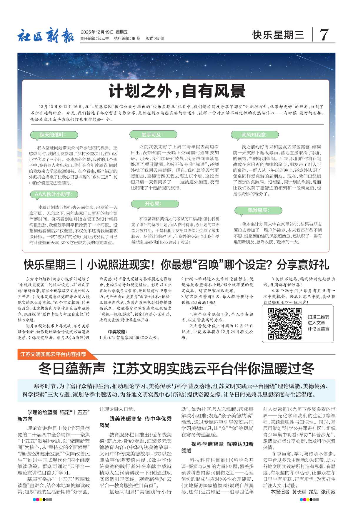 寒冬时节,为丰富群众精神生活,推动理论学习、美德传承与科学普及落地,江苏文明实践云平台围绕“理论赋能、美德传扬、科学探索”三大专题,策划冬季主题活动,为各地文明实践中心(所站)提供资源支撑,让冬日时光兼具思想深度与生活温度。